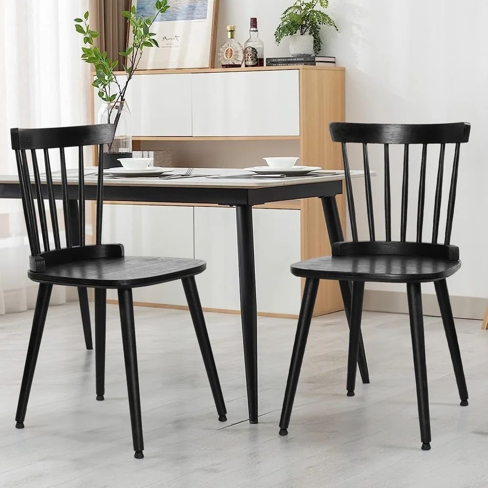 Modern Windsor Dining Chairs – Solid Wood Set of 2 Black