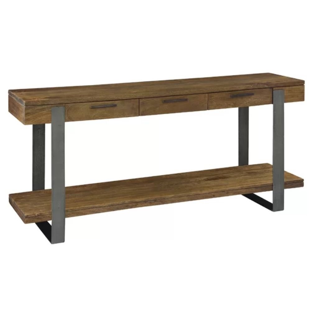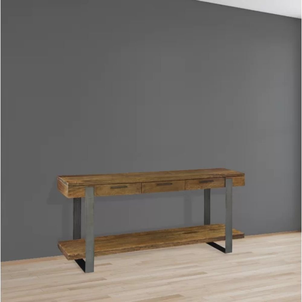 Every joint and angle is reinforced to provide a seamless look that hides the complexity of its construction. The substantial weight of the solid wood top ensures that the console table stays securely in place, even in high-traffic areas of the home. By prioritizing a “less is more” approach, the design focuses on clean lines and a bold footprint, making this console table an essential element for organized and sophisticated modern living spaces. The industrial metal legs are built to handle significant weight, allowing for a diverse range of decorative configurations while maintaining its perfectly level and sleek architectural profile.