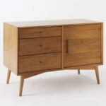 Constructed from premium materials, the sideboard boasts a robust frame that ensures durability and longevity. The thoughtfully arranged compartments, shelves, and drawers provide ample storage space for your dining essentials, tableware, or other cherished items.