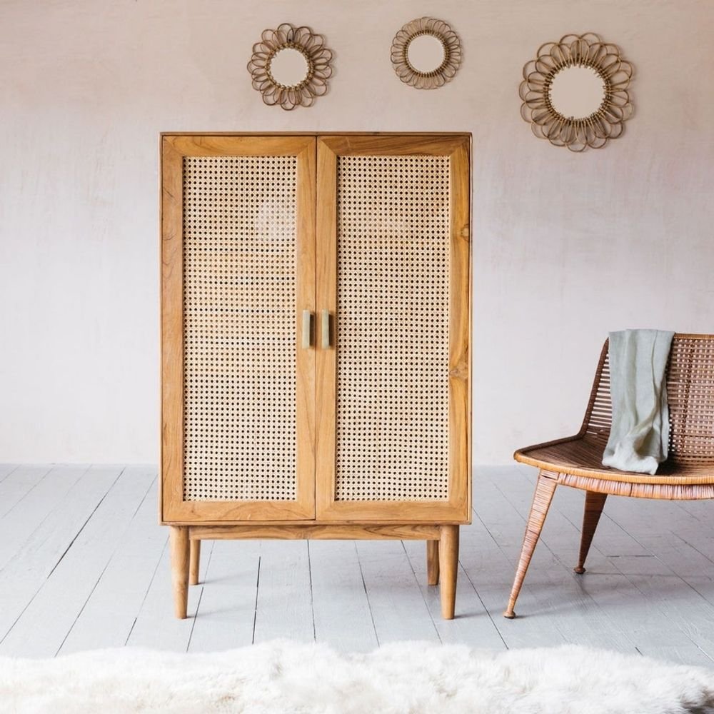 Dining Chair with Armrests in Ash Wood and Rattan Lali Style